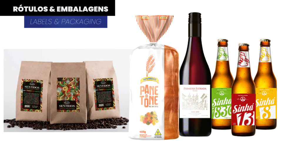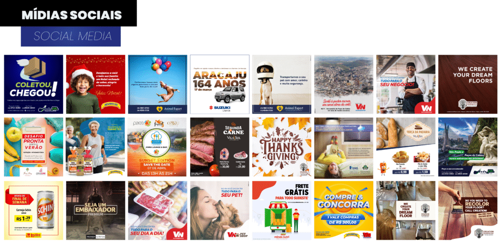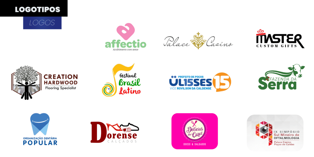 Logotipos e identidade visual, peças para redes sociais, rótulos e embalagens, sinalização de lojas e fachadas, anúncios publicitários e impressos.